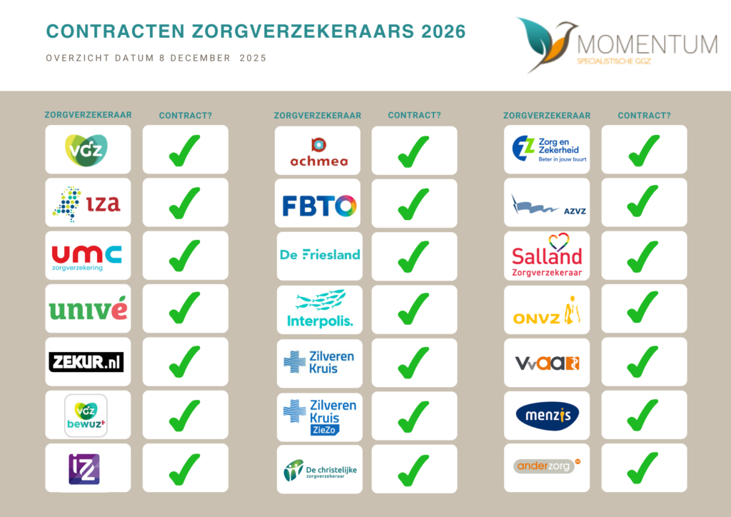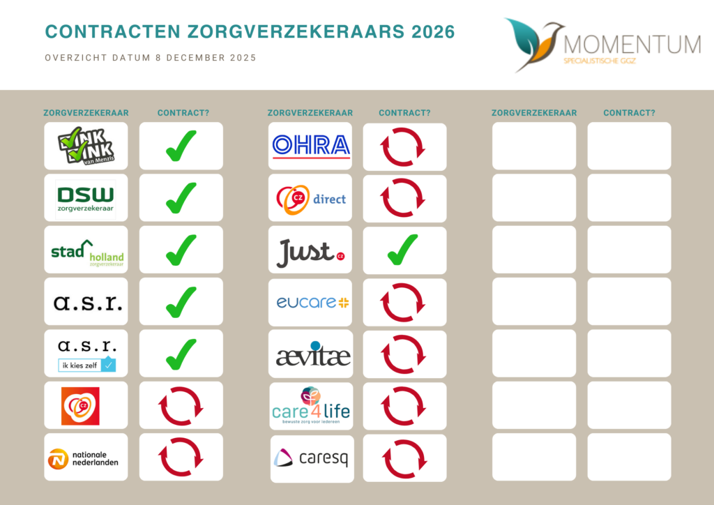 Het nieuwe jaar staat weer bijna voor de deur. Dat betekent dat je tot 31 december 2025 de tijd hebt om van zorgverzekeraar te veranderen. Hieronder kun je zien met welke verzekeraars we voor 2026 een contract hebben afgesloten.